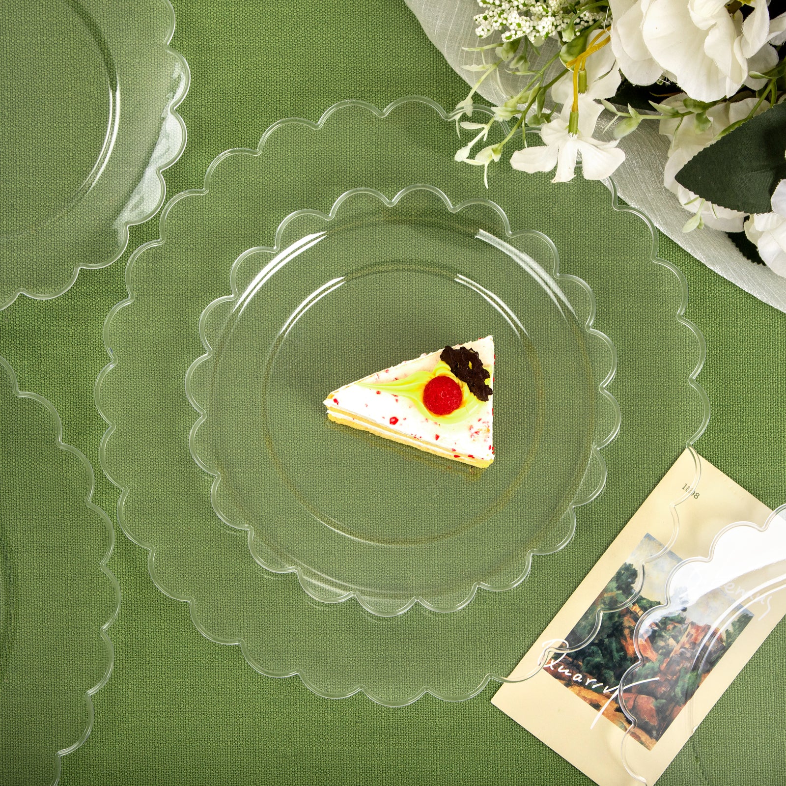 - 【Exquisite design】To add a touch of elegance to your special event, the clear plastic plates consists of 50pcs 10.25 inch clear dinner plates,50pcs 7.5 inch plastic dessert plates.Baby shower plates all featuring a beautiful edge.