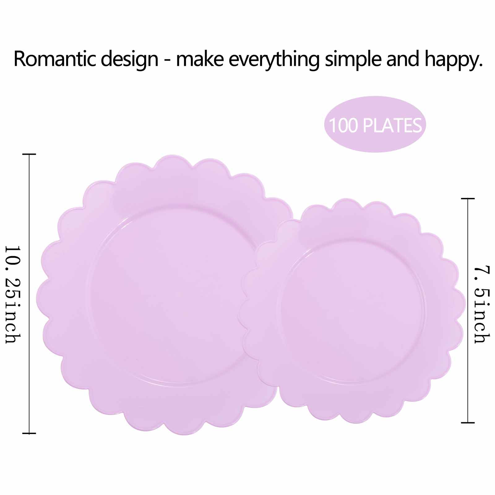 100PCS Purple Plastic Plates -Disposable Plastic Plates -Lavender Purple Party Plates for Party/Wedding -Include 50PCS 10.25inch Heavy Duty Dinner Plates, 50PCS 7.5inch Dessert/Salad Plates