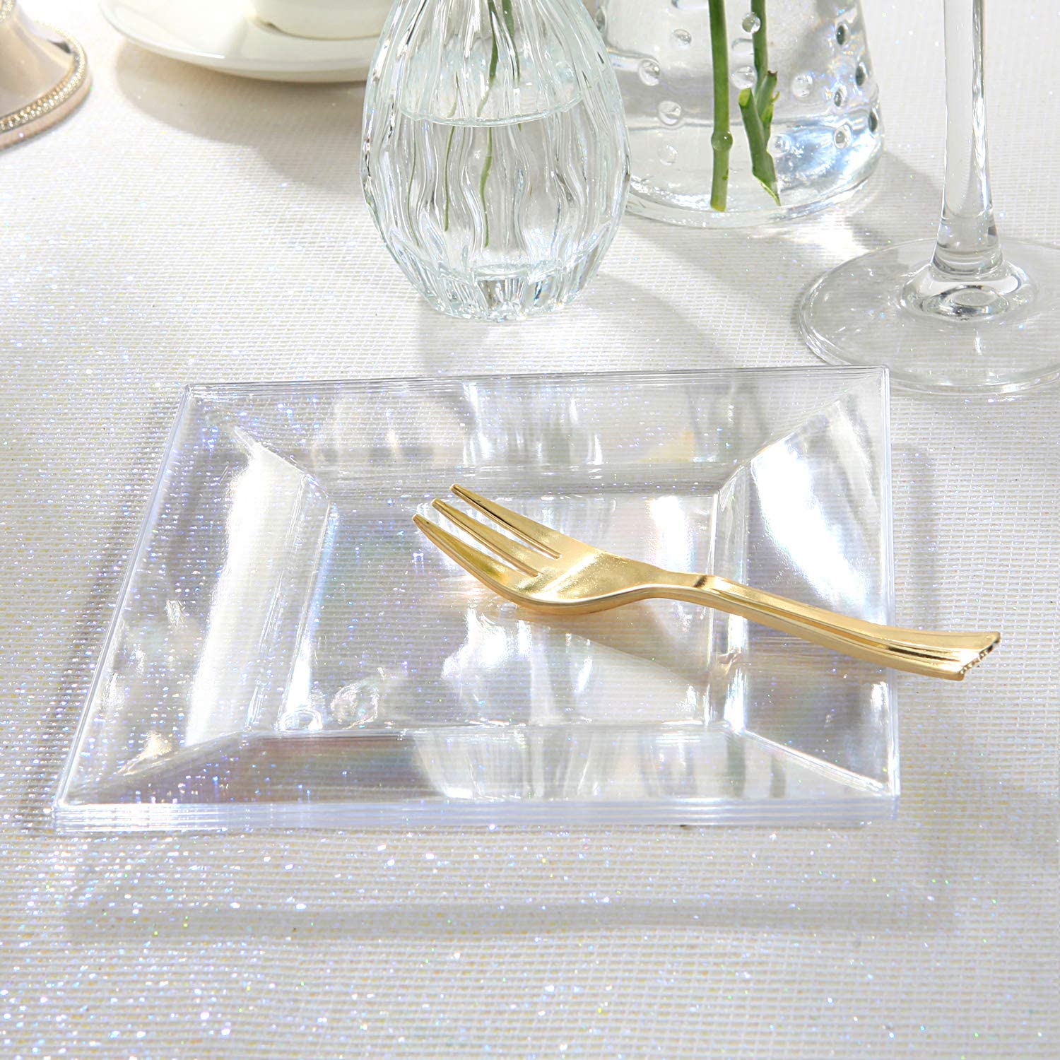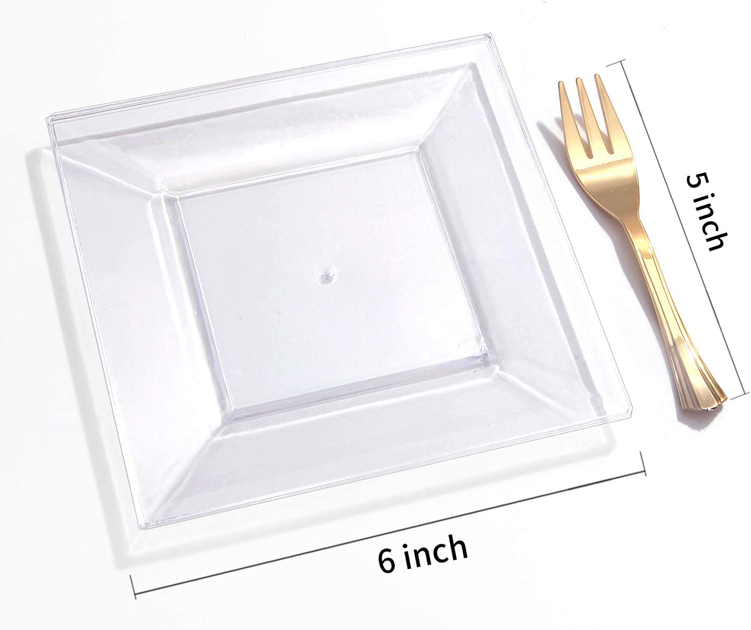 - PREMIUM QUALITY: Clear dessert square plates with dessert forks are made of hard plastic, BPA free, non-toxic, and food grade, making them ideal for serving party and delicious food.