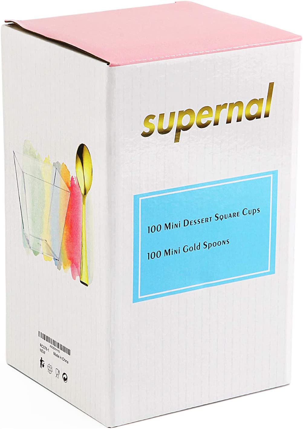 - Value Pack-the dessert tabeware set include 100 4oz square plastic dessert cups, 100 gold spoons. It have polybag in the box. If you can't use all of the cutlery in one time, pls put back in the polybag which will help you to keep them clean.