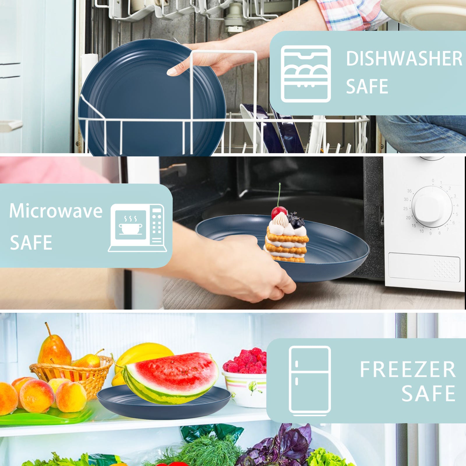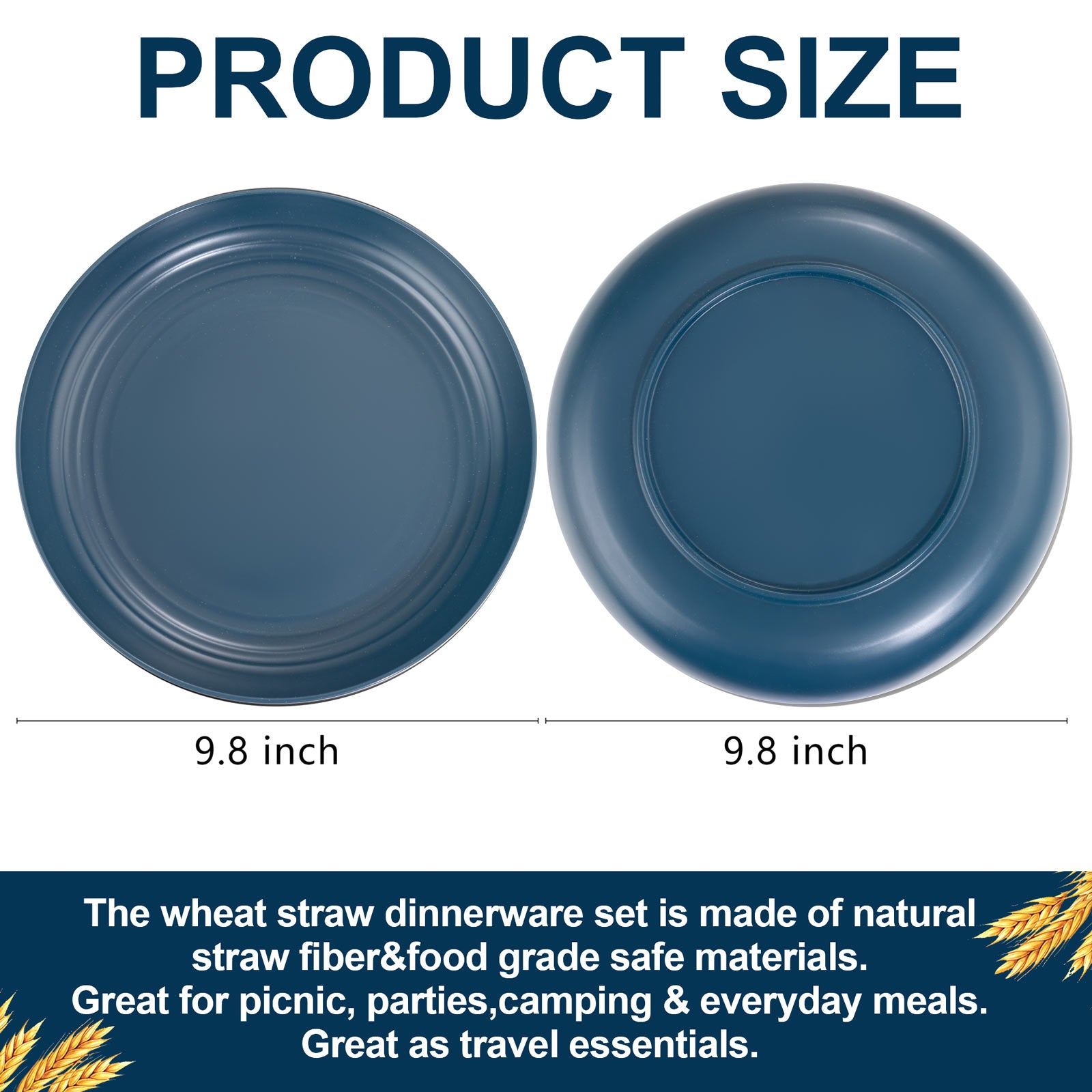 - Wheat straw plates set of 16- Our wheat straw reusable dark blue plates elevates everyday meals to delightful colors and flavors. Featuring 16 wheat plates in beautiful hues, you can not only eat, but admire and appreciate.