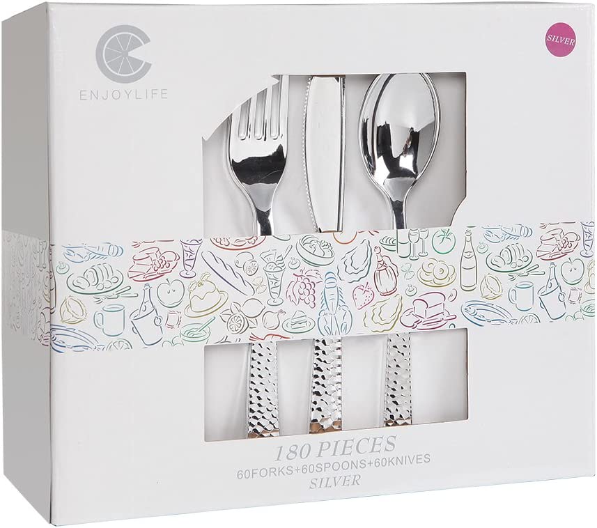 180 pieces Silver Plastic Silverware,Disposable Plastic Silverware,Party Plastic Flatware,Perfect Plastic Silver Cutlery for Birthday,Party,Wedding