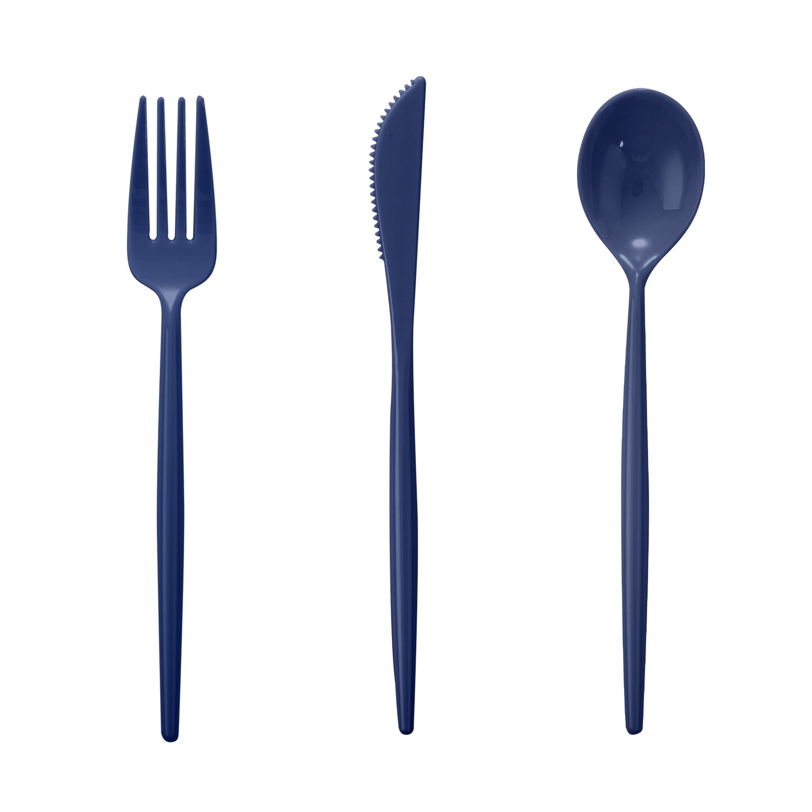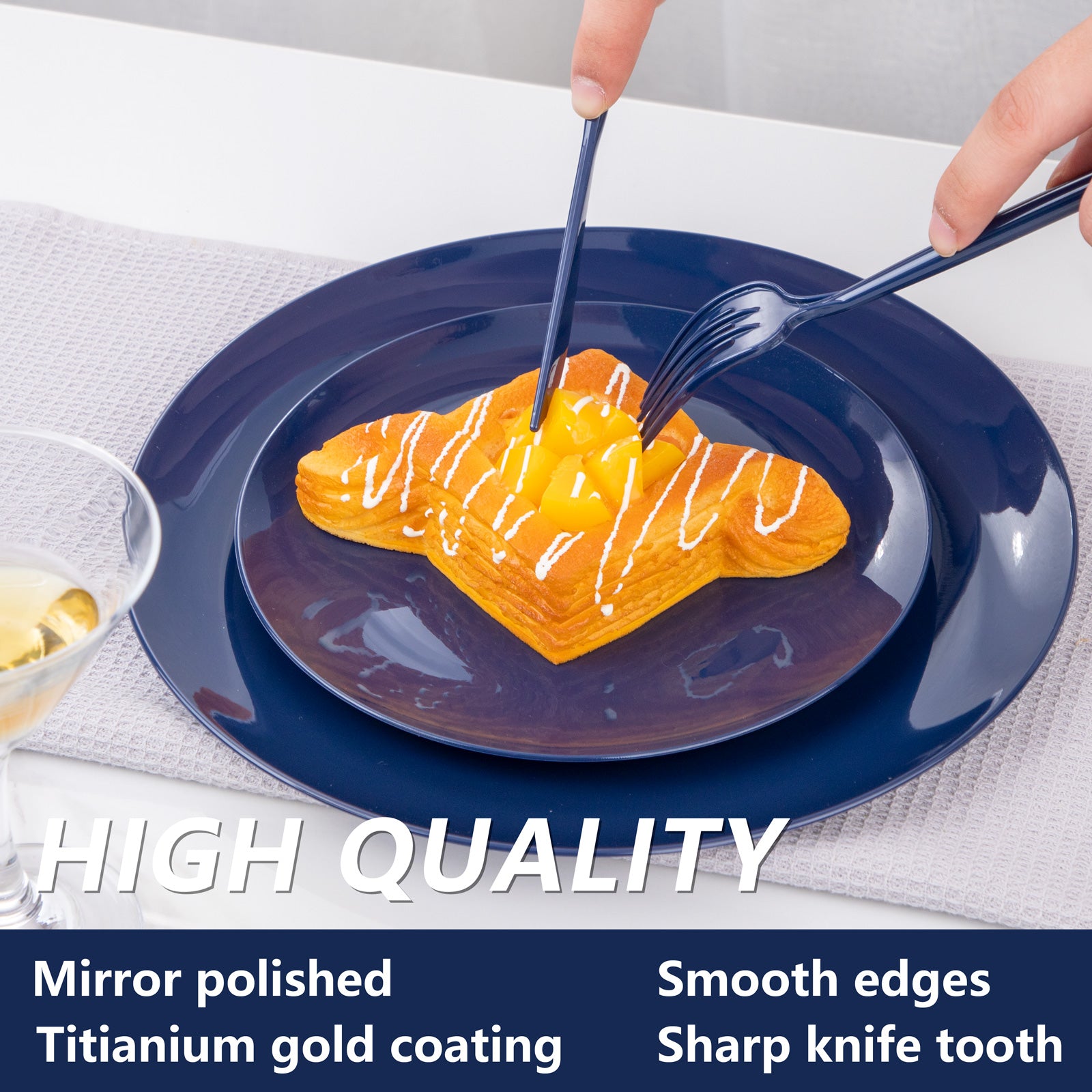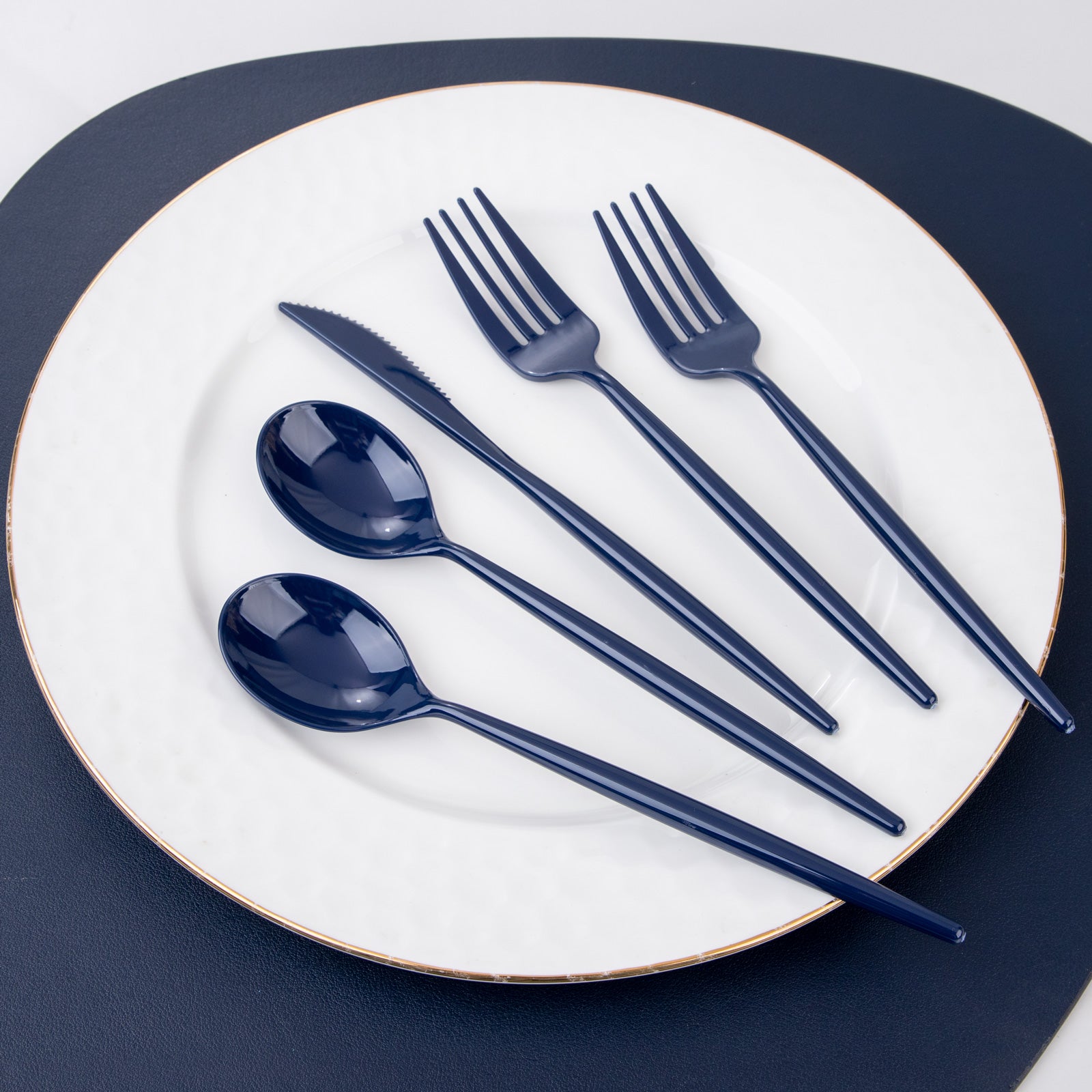 - [Blue Plastic Silverware Heavy Duty]-The blue plastic cutlery are higher quality which are made by pure PS material and stronger in the handle part. Blue plastic dinnerware set are made of 100% food grade plastic, BPA free and no toxic.