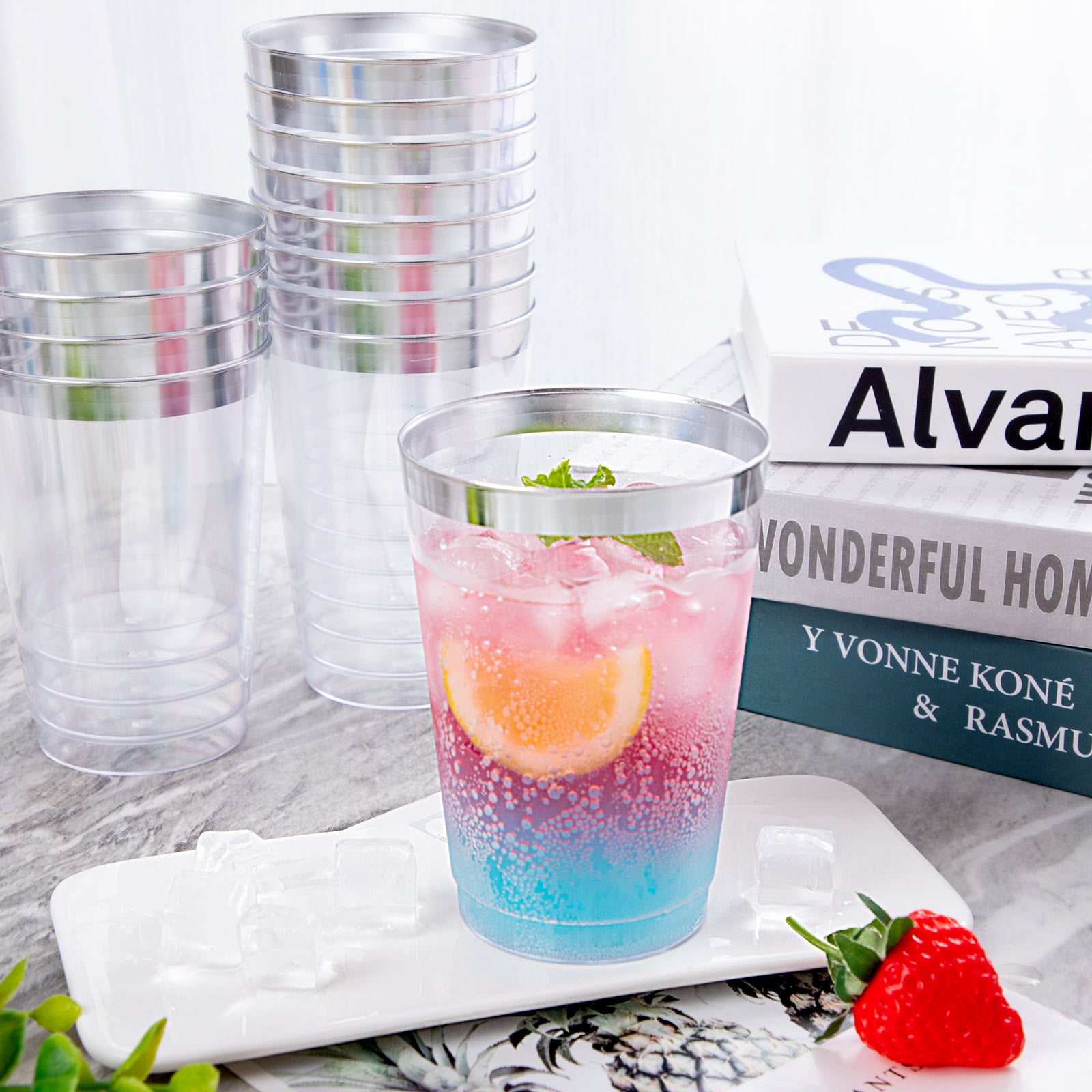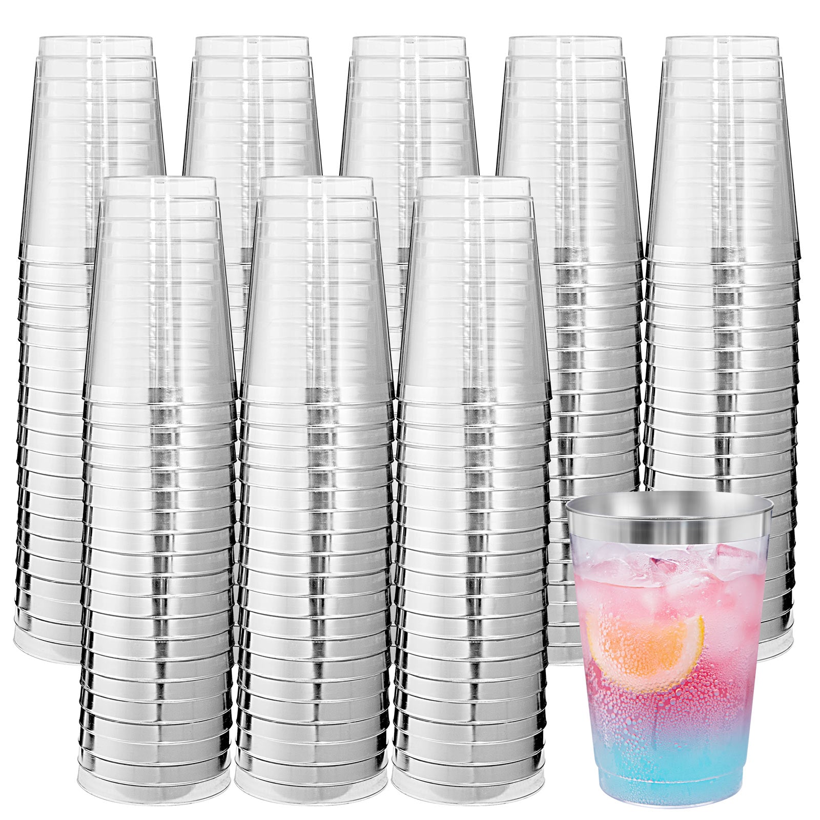 200pcs Silver Plastic Cups,12oz Clear Plastic Cups Tumblers,Silver Rimmed Cups,Elegant Party Cups,Premium Silver Disposable Cups,clear party cups,Plastic Wine Glasses,Plastic Cups for Party