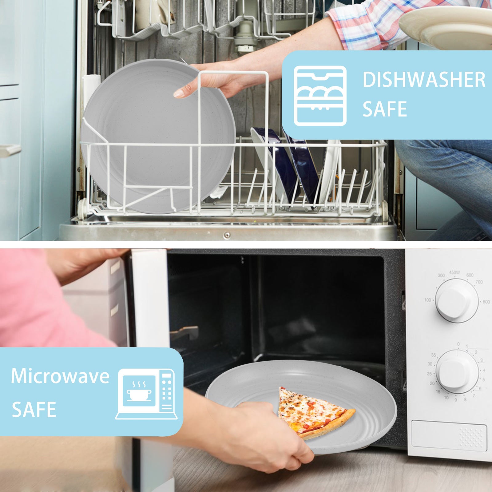 - [Reassuring material]-Plates and bowls sets are made from natural wheat grass fibers and food grade safe materials. It is 100% BPA free and non-toxic, making it safe to serve food, hot or cold.