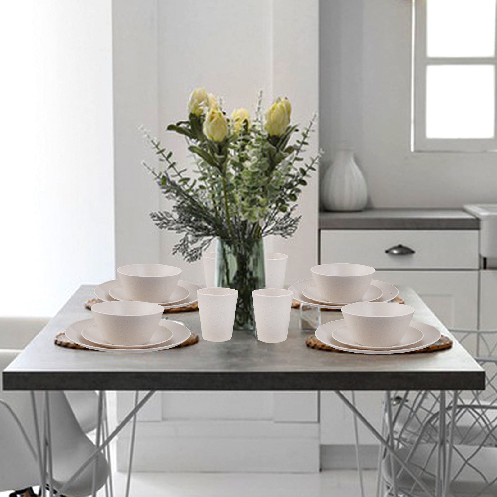 - DISHWASHER & MICROWAVE SAFE DINNERWARE SETS:The plastic dinnerware set are solid and durable, and easy to clean. With the admirable heat-resisting ability, these beige dinnerware sets is safe to use in the microwave and dishwasher.