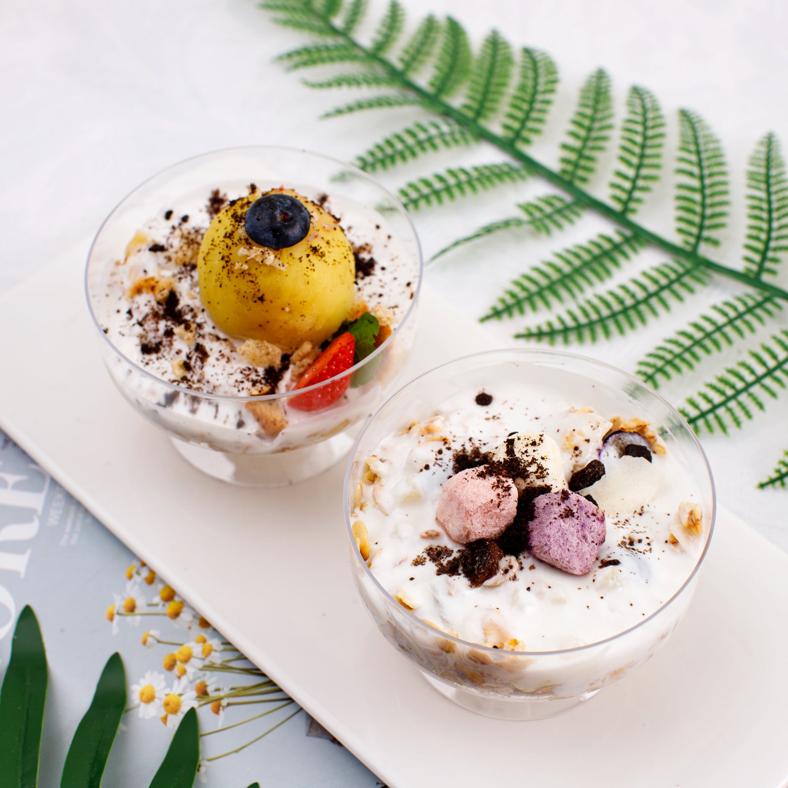 - 【HOW TO USEO】-Our plastic ice cream cups have a capacity of 7 oz better than most dessert cups and its elegant design is the perfect way to showcase your favorite ice cream, ice, sorbet, fruit salad, sundaes, milkshakes, any kind of mousse, and can also be used as a parfait cups.